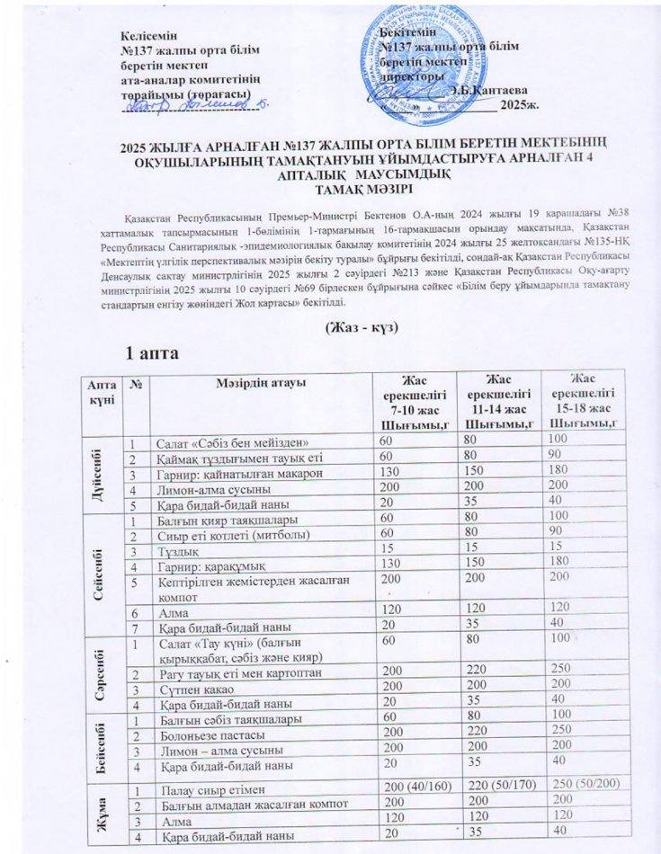 Ас мәзірі » Шымкент қаласының білім басқармасының «№137 жалпы орта білім беретін мектебі» шаруашылық жүргізу құқығындағы мемлекеттік коммуналдық кәсіпорны