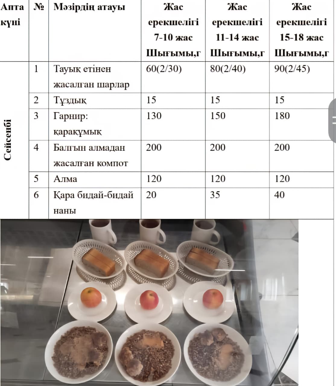 Мектеп асханасындағы ыстық тамақтың ас мәзірі