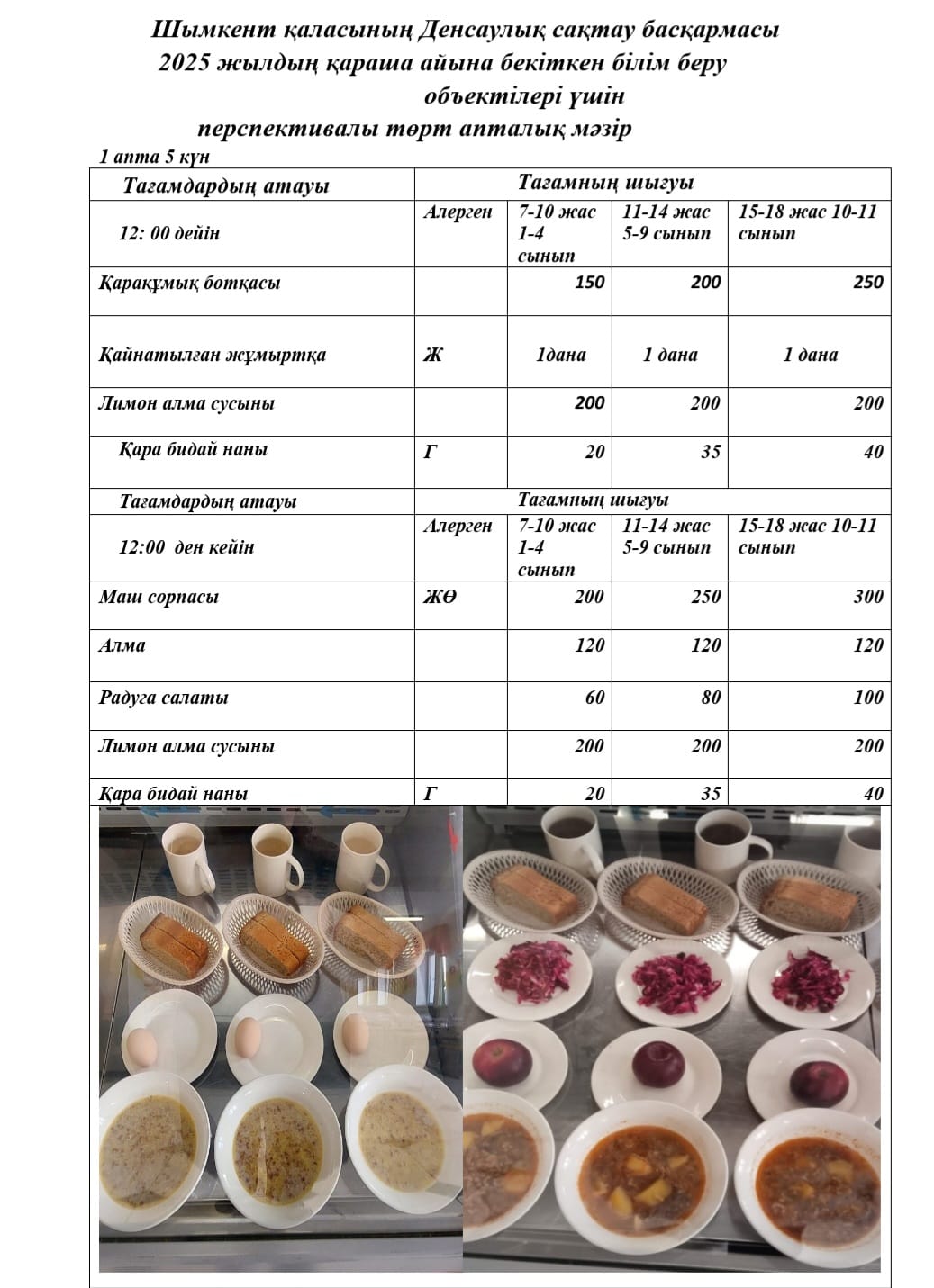Мектеп асханасында берілетін ас мәзірі » Шымкент қаласының білім басқармасының «№137 жалпы орта білім беретін мектебі» шаруашылық жүргізу құқығындағы мемлекеттік коммуналдық кәсіпорны